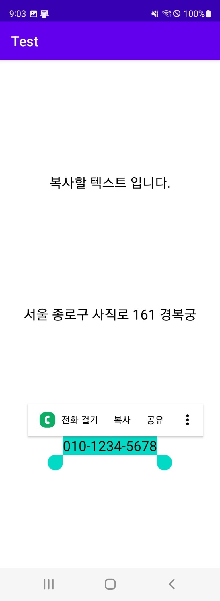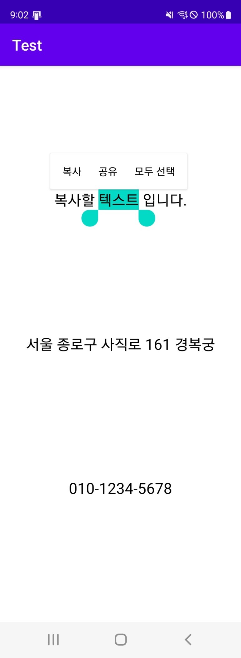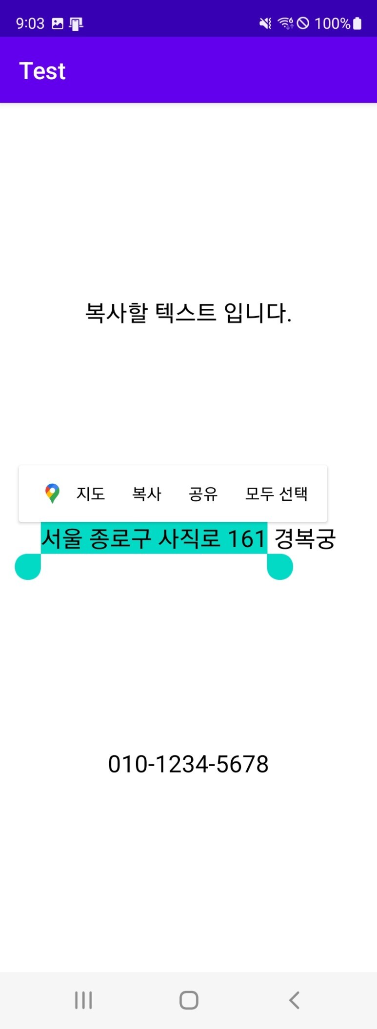 일반 텍스트, 주소, 전화를 두고 롱클릭을 한다면 위의 사진 처럼 자동으로 인식해서 주소일 때는 지도, 전화번호일 때는 전화걸기가 뜬다.
