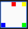 60dp의 사이즈를 만들어서 각 모퉁이에 box1, box2, box3, bo4를 배치하게 해두었다.