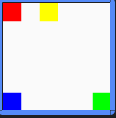 60dp의 사이즈를 만들어서 각 모퉁이에 box1, box2, box3, bo4를 배치하게 해두었다.