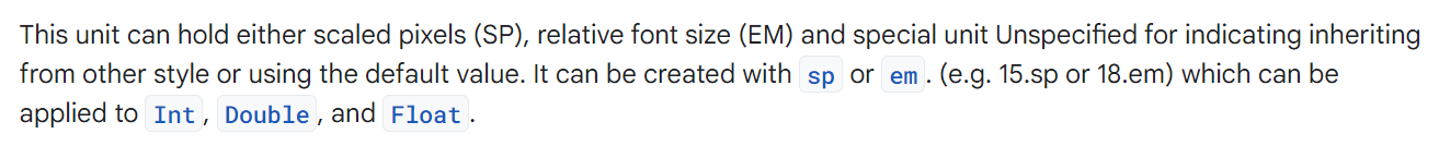 sp와 em을 기본적으로 사용할 수 있기 때문에 xml에서 자유롭게(?) 사용할 수 있었던 dp는 사용이 불가하다.