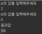 재귀란? 함수 내에서 자기 자신을 또다시 호출하는 행위 1. x의 n제곱을 구하기 위해서는 x를 n번 만큼 곱해야한다. 2. x가 1일 경우 무조건 1이다. [전체코드] public static void main(String[] args) { System.out.println("x의 값을 입력해주세요."); Scanner scanner = new Scanner(System.in); int x = scanner.nextInt(); System.out.println("n의 값을 입력해주세요."); int n = scanner.nextInt(); System.out.println("결과값"); int result = square(x,n); System.out.println(result); } private s..